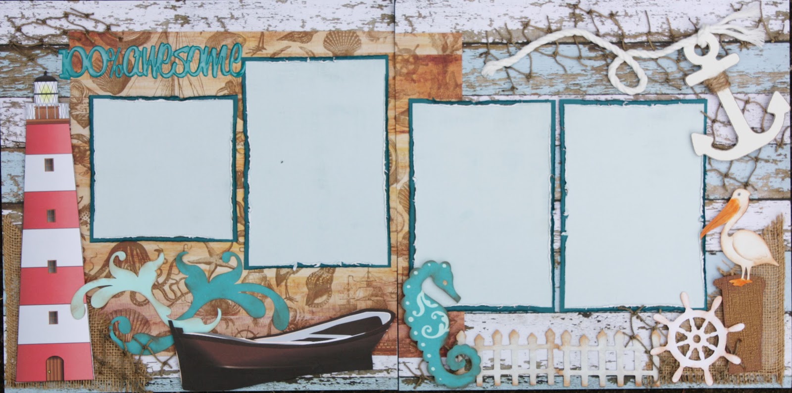 Here are a couple of summer layouts that I made for vacation photos. This first one is titled "Awesome Seashore".